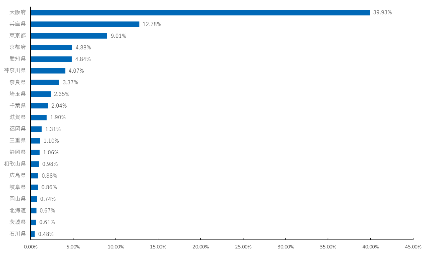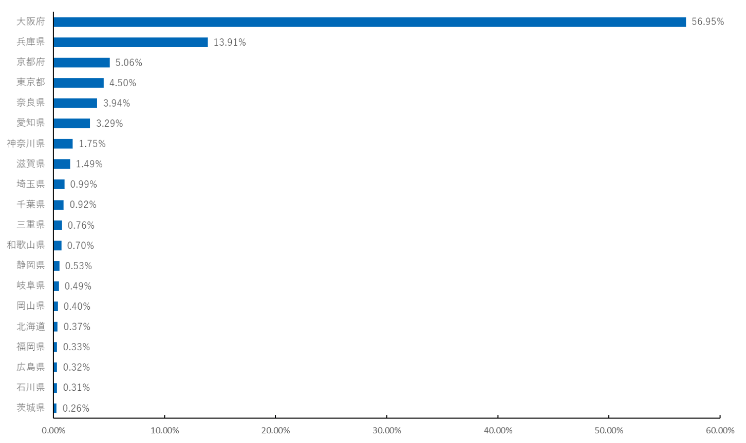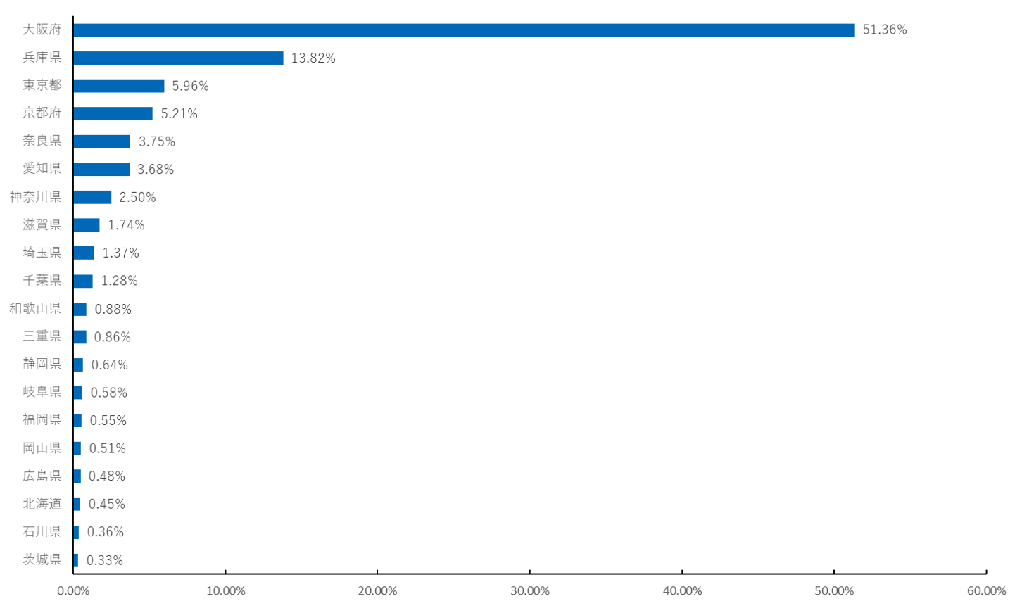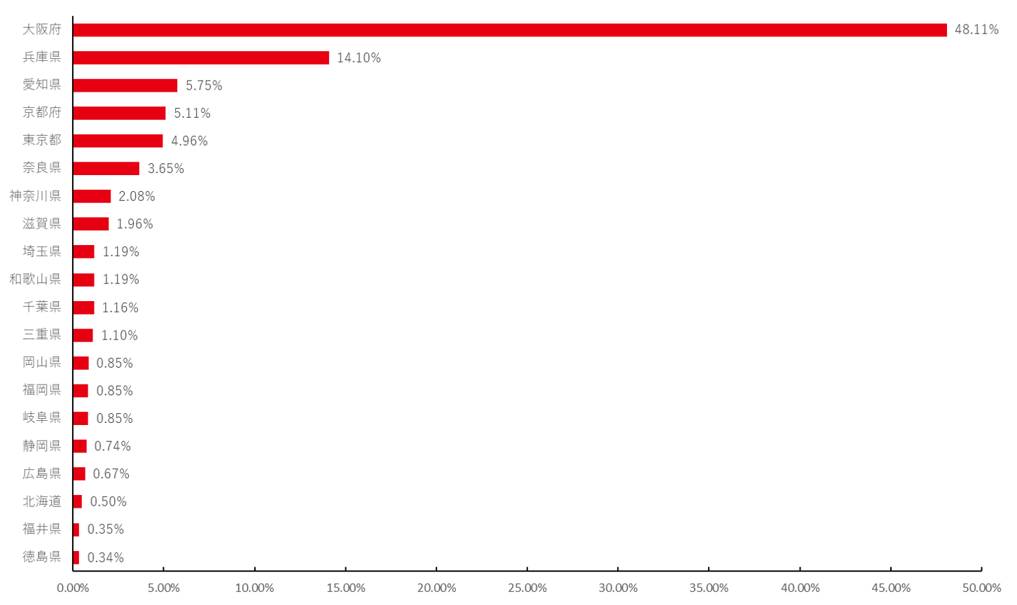 また、時間が経つにつれ関西隣接県の比率が圧倒的に増加していることがわかりました。